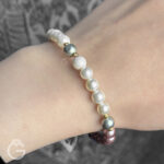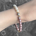 دستبند مروارید دو رنگ اصل و گوی طلا