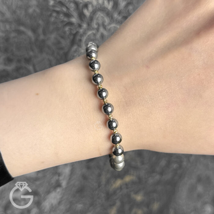 مدل دستبند : مروارید شل درجه یک و گوی طلا
