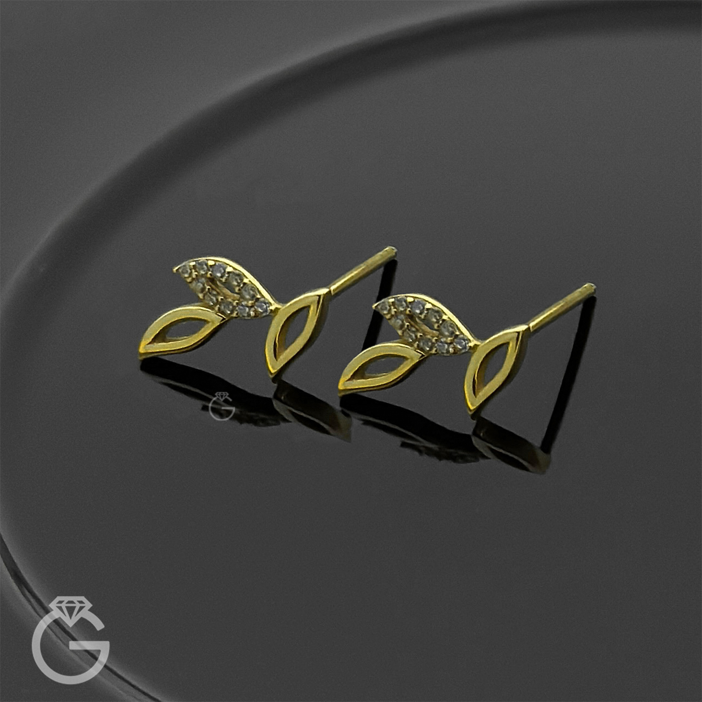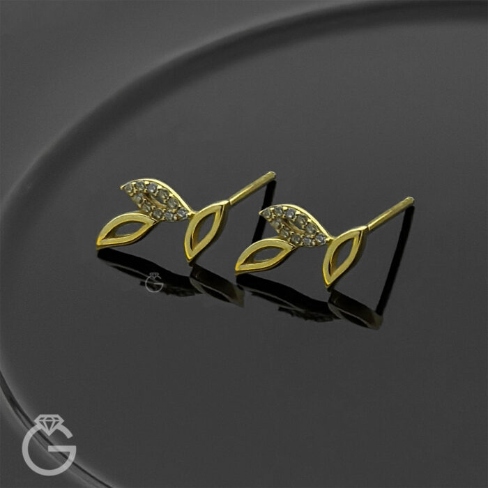 گوشواره طلا طرح برگ نگین دار