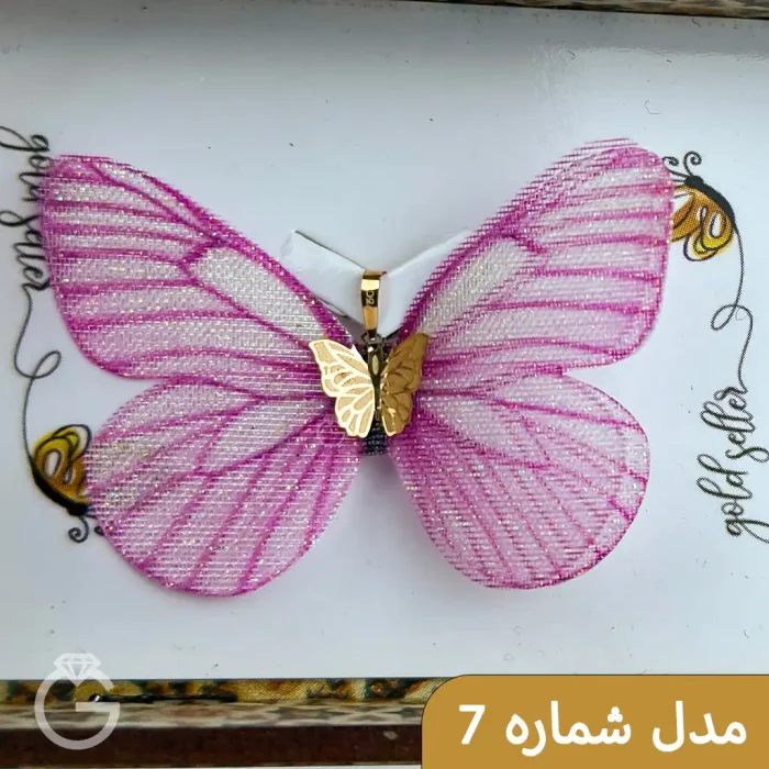 پلاک های طلای پروانه پارچه ای تم قرمز و صورتی